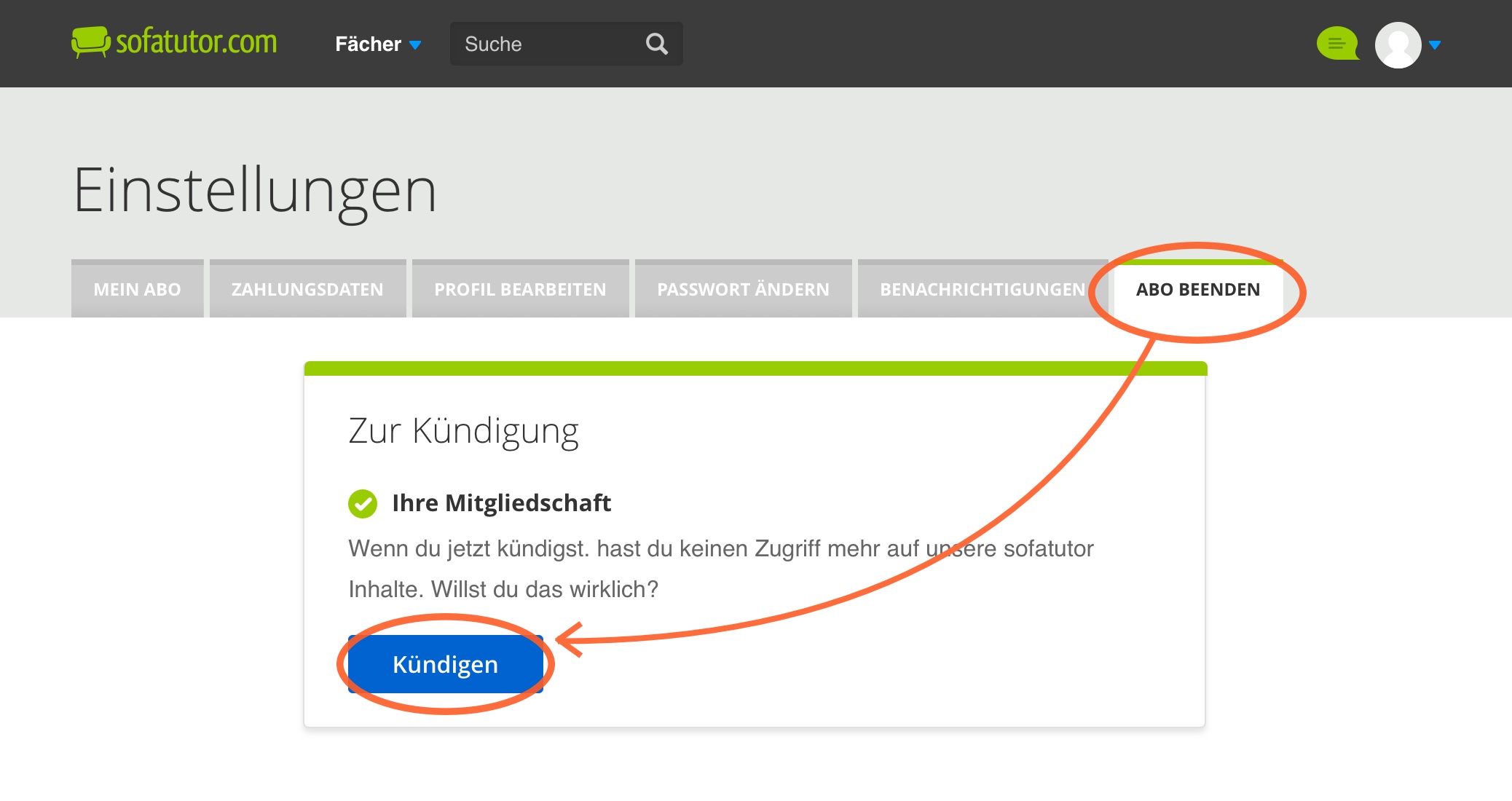Unterrichten mit LernvideosUnsere Abos verlängern sich nach Laufzeitende um die eigene Laufzeit zum unrabattierten Preis. Wenn Sie sofatutor nicht mehr nutzen möchten, so genügt die rechtzeitige Kündigung in Textform (z. B. per Brief, Fax oder E-Mail). Im 12-Monats-Abo haben Sie hierzu bis 14 Tage vor Laufzeitende Zeit.